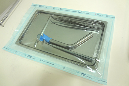 オートクレーブで滅菌処理したミラーやピンセットなどの器具をパッキングしてご用意しております。